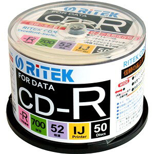 RiTEK CD-R700EXWP.50RTC データ用CD-R 50枚●内径22mmまで印刷可能なワイドプリンタブル対応●印刷はもちろん手書もしやすく便利!●データ1回記録用CD-R【仕様】データ用CD-R1回記録用...