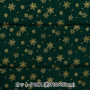 生地 『クリスマスプリント カットクロス 雪の結晶 約110cm×50cm グリーン C-DX11840L-D』 クリスマスシーズンの小物づくりや飾りつけに♪ クリスマスシーズン、グリッターが華やかな印象の雪の結晶柄の生地です。 薄手...