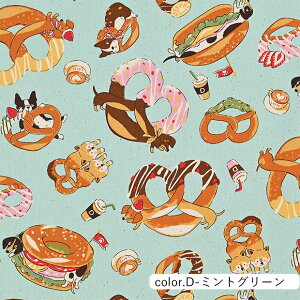 日常づかいにピッタリな素材。 バックやポーチなどの小物類、エプロン、クッションカバーなどのインテリア雑貨にもおすすめです。 [プレッツェル犬 布 ソーイング 手芸 ハンドメイド 手作り 犬パン いぬ...