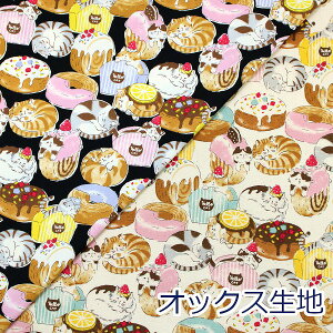 KOKKA 〜 アンモニャイト クロワッサン 〜 オックス生地 #ゆうパケ4点可 丸くなってアンモナイトみたいな猫たちとスイーツのコラボ ほっこり癒される甘くて可愛らしいデザイン オックス生地は程