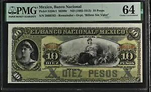 Mexico, Banco Nacional ND (1885-1913) 10 Pesos P#S258r1 M299r PMG Ch UNC 64商品について販売者メモ「S/N 3866163 - 残り - オーバープリント: "...
