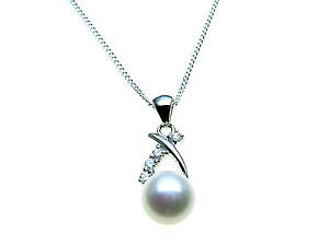 925 argento sterling perla amp; white cz set ciondolo amp; collana catenaスターリングシルバーパールホワイトセットペンダントチェーンネックレス