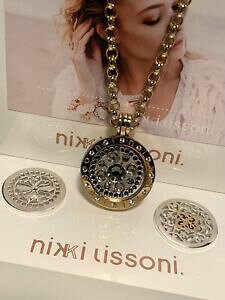 nikki lissoni swarovski piccoli catena doro ciondolo amp; tre monete dargentoニッキーリッソーニスワロフスキースモールゴールドチェーンペンダント