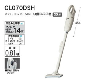 CL070DSH 7.2V1.5AhバッテリBL0715・充電器DC07SB付 {約30分充電} 7.2v リチウムイオン1.5Ah 吸込み仕事率 (フィルタ) 14W 質量0.81kg