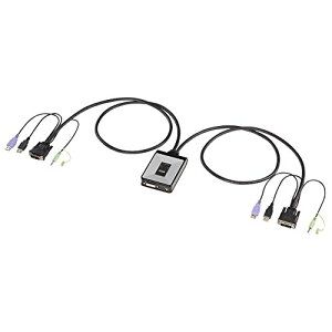 1組のUSBキーボード・USBマウス・ディスプレイを切替共有でき、ノートパソコンにも対応したパソコン自動切替器。 1組のUSBキーボード・USBマウス・ディスプレイで2台のパソコンを切り替えて使用可能。 場所を取らないケーブル一体型のコン