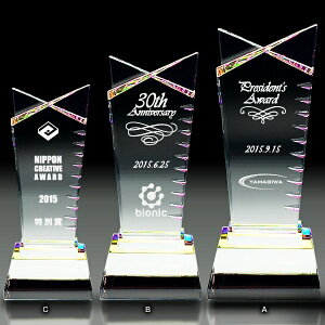 1.底面の特殊なホログラム加工でガラスが見る角度で虹色に輝きます。 2.価格以上に重量感・高級感がございます 3.シンプルな形状なのでどのような表彰品・記念品にも対応できます。 ※デザイン料・加工料【全て込みの価格】ですA:幅11×高さ2