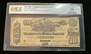 $10 1861 Confederate States of America PCGS Very Fine 20 T-29 PF-1 CR-237商品について販売者メモ「シリアル番号 17680 プレート番号 E クロスカットキャンセ...