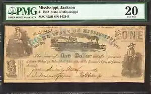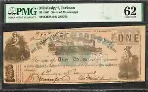1862 $1 JACKSON MISSISSIPPI DOLLAR NOTE MSCR28 OBSOLETE CURRENCY PMG 62 UNC (060商品についてPMG認証62年生シリーズ 1862 年1862年循環/非循環...