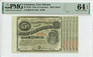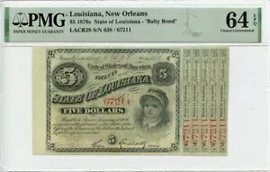 1870s $5 Louisiana New Orleans Baby Bonds OBSLACR29 PMG CH64 EPQ GCC GOLD商品について認証 PMG認証番号 2023456067グレード MS64流通/未流通 未...
