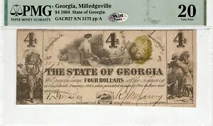 GA CR-27 1864 $4 Georgia Paper Money - PMG Very Fine 20 - PLUS!商品について販売者のメモ「中級ジョージア州のメモ。ほとんどが額装されています。明るい色!シルバーのPLUSス...
