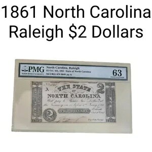 1861 States of North Carolina, Raleigh $2 Dollars Oct 4th PMG-63 NCCR21 S/N 8045商品について額面 $2循環/非循環 非循環南軍通貨の種類認定番号は表示の通...