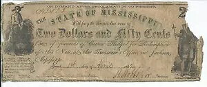 1862 $2.50 Mississippi Jackson bank note Cr27 #822 low Serial # Cotton Pledged商品について販売者のコメント「古い紙幣で、状態は悪いですが、それでも希少で価値...