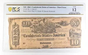 1861 $10 Confederate Third Issue T-29 PF-1 CR-237 Fine 12 PCGS *0138商品についてPCGS認証12年生循環/非循環 非循環額面 $10国 米国注意事項※以下の注意事項を...