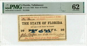 1863 10 Cents Florida, Tallahassee PMG Unc62 OBSFLCR28商品について認証 PMG認証番号 2202748019グレード MS62流通/未流通 未流通額面 廃紙幣注意事項※以下の注意事...