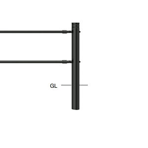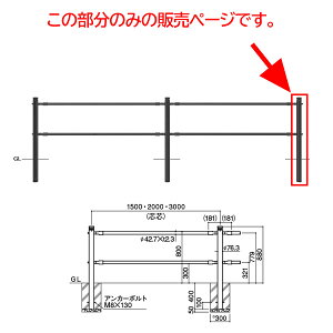 端部支柱 右用(ジョイント付) 支柱材質・仕上/アルミ合金鋳物+鋼管(STK400)、焼付塗装 ジョイント材質・仕上/アルミダイカスト(ADC12)、焼付塗装 標準色/150メタリックブラック 特記/取付ピッチ3m、10スパンの場合の...