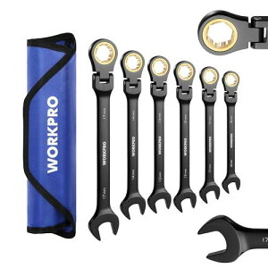 ボルトなども傷めません。 【高耐久】高品質CR-V鋼製本体に熱処理、堅牢で耐久性に優れています。表面処理としてクロムメッキを施して耐食性も抜群で外観も綺麗です。 【セット内容&収納袋付き】収納袋付き72ぎア首振ラチェットレンチ9本組で...