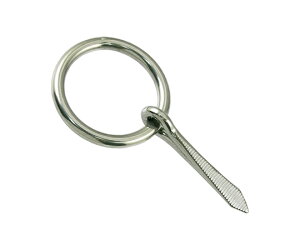 ●木製の壁面、床面、柱等に打込み、チェーン、ワイヤー、ロープ等を吊り下げる事ができます。●使用しない時はリングが倒れるので邪魔になりません。●ステンレス製なので、防錆性・耐候性に優れ丈夫で長持ち。●屋外・海岸での使用