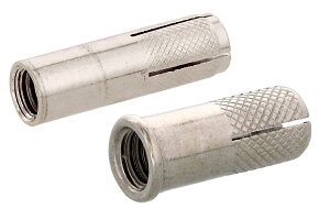 特長 接地面積が広く、優れた引張強度を誇るめねじアンカーです。 カラー外径がめねじ径に対し細いため、下穴径が小さく、施工性が向上します。また、上向き施工も簡単です。 内部コーン採用。作業中のコーン紛失や施工後の「ヌケ」を