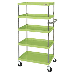 【組立式】 【組立費別途】 《商品説明》 ●ボルトレスで組立簡単。棚板を逆さにするだけで、皿型・フラット型と組み替えることができます。油に強く床面に跡がつきにくいナイロンウレタン車を採用。 ●グリーン購入法適合商品 《商品スペック