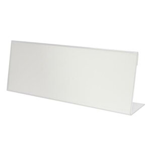 オフィスの案内表示用、店舗のプライスカード立て等に適したL型カード立て。・L型・幅180×奥33×高70mm・中紙寸法:縦65×横178mm・材質:透明メタクリル樹脂2mm厚※購入時は中紙が1枚装着されています。・