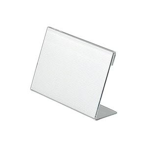 オフィスの案内表示用、店舗のPOP・プライスカード立てなどに L型タイプ:表示面傾斜角度=70°品番:CT-100L 中紙サイズ:W298×H99mm 外形寸法:W300×D50×H105mm 材質:透明メタクリル樹脂(アクリル)2....