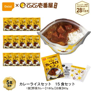 5年保存 CoCo壱番屋監修 尾西のカレーライスセット 15食 セット 野菜カレー アレルギー対応 カレーハウスCoCo壱番屋と初のコラボレーション! 尾西食品のアルファ米とセットで、非常時でも日常でも...