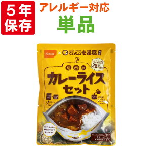 レトルトカレーとお湯または水を加えるだけでおいしいご飯ができるアルファ米がセット。 原材料には、アレルギー物質(特定原材料等)28品目は不使用。 保存期間は製造後5年6か月と長期保存が可能。スプーン付。 ●内容量 カレー180g、ア