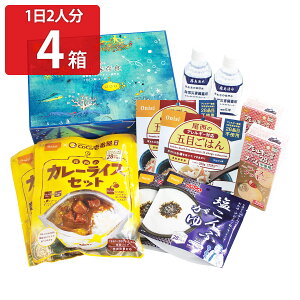 「長期保存ギフトボックス 1日2人分×4セット」です。万が一に備えておく非常食を、ご自宅、ご贈答用としてご活用いただけます。アウトドアや旅行でも使える1日3食2人分×4セットです。かわいいデザインの箱に入れてお届けします...