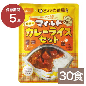 商品名 Coco壱番屋監修 尾西のマイルドカレーライスセット 30食 商品詳細 名称:野菜カレー・アルファ米 セット内容:野菜カレー、アルファ米、スプーン