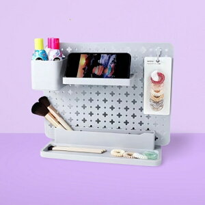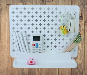工具不要で簡単に設置可能。横置きでも縦置きでも使える。用途に合わせたカスタマイズパーツで自由にレイアウトペグボードは建材や什器としても用いられている一面に等間隔の穴が空いた板材。「ペギー」は、そんなペグボードを使った