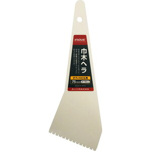イノウエ 70ミリ13003 【用途】 巾木用プラスチックヘラ。 【機能・特徴】 巾木のサイズにぴったり合って、巾木と壁面の接着をスムーズに行うためのヘラです。 ギザ付なのでムラなく糊付けができ、きれいに仕上がるのが特徴です。
