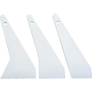 ・巾木のサイズにぴったり合って、巾木と壁面の接着をスムーズに行うためのヘラです。・プラスチック製で、3サイズの中で巾木のサイズに合ったヘラを選択、使用することで作業効率がアップします。・ギザ付なのでムラなく糊付けができ