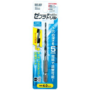イチネンMTM ミツトモ ゼブラテーパードリル 4.0mm 26332●割れやすい素材や加工物に木ネジや釘を打つときの下穴あけに。● 5mm幅で白と黒のゼブラ模様になっているので下穴の深さを5mm間隔で調整できる...