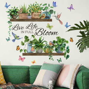 棚に植物や本が並べられたようなリアルデザインがお洒落なウォールステッカー。 お部屋に緑を取り入れられる嬉しいデザインです♪ ※画像にある3種のステッカーが1セットでの販売です。 【サイズについて】 画像をご参照ください...