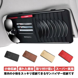 【小物収納】車内の小物をスッキリ収納できるサンバイザー収納です。CD・DVDを10枚、カード類を6枚、そのほかペンやサングラスなど小物を入れることができる収納ケースです。
