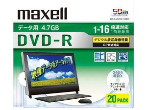 maxell 16倍速対応データ用CPRM対応DVD-R4.7GB20枚1枚ずつプラケース プリント対応ホワイト DRD47WPD.20S規格:-R / 容量(GB):4種類:PC用 / 記録面:片面1層 / 16倍速入数:20盤面印...