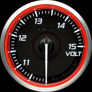 Defi Racer Gauge N2プラス 60Φ (レッド) 電圧計 DF19802。完全独立作動でコントロールユニット不要、ワーニング、ピーク。