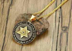 grande illuminati occhio della provvidenza doppia collana con pendente triangolo terzo occhioエンデアントトライアングルサードアイダブルネックレス