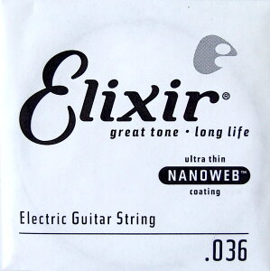 エリクサーのNANOWEBコーティング弦です。ゲージは036になります。主にエレキギターの5弦用として使用します。4本セットでの販売です。