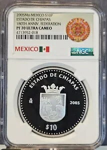 2005 MEXICO SILVER 10 PESOS CHIAPAS 180TH ANNIVERSARY NGC PF 70 ULTRA CAMEO RARE商品について額面 10 ペソ循環/非循環 非循環構成シルバー2005 年認...