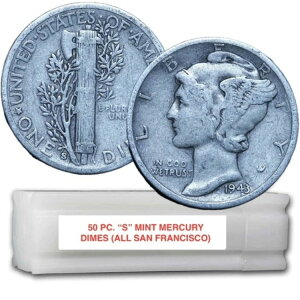ROLL OF 50 MIXED “S” MINT MERCURY SILVER DIMES G/VG ALL SAN FRANCISCO MINT!商品について出品者からのコメント「これはストック写真です。写真に似た、シルバーマーキ...