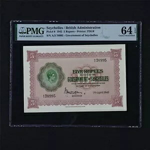 1942 Seychelles / British Administration 5 Rupees Pick#8 PMG 64 EPQ Choice UNC商品について循環/非循環 非循環紙幣の種類1942年国 セイシェルグレード指定...