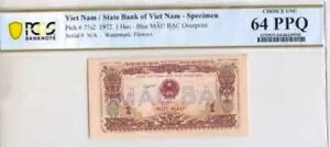 Vietnam Mot Hao (10 xu)- 1972-pick 77s2--PMG # CU/64-SMALL SIZE -SPECIMEN note..商品について販売者メモ「CHOICE/UNC-64」宗派 Mot hao ...