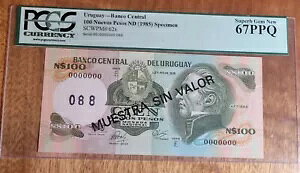 1985 URUGUAY 100 nuevos pesos PICK 62s SPECIMEN Banknotes PCGS 67PPQ HIGH GRADE商品について紙幣の種類1939 年国 ウルグアイグレード65PMG認証注意事...