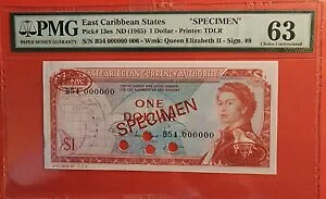 1965 $1 East Caribbean Banknote Pick# 13es PMG 63 "Specimen" Sign. #8商品について流通/非流通 非流通種類 紙幣年 1965年国 バハマグレード 63製造国/地域 バ...