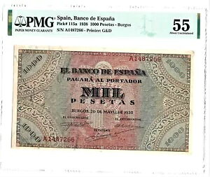 Spain Banco de Espana 1000 Pesetas 20.5.1938 Pick 115a PMG About Uncirculated 55商品について1938年循環/非循環 非循環PMG認証国 スペイン製造国/地...