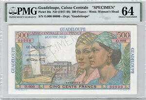 Guadeloupe SPECIMEN 500 francs (1946) Pick 36s PMG 64 MA-商品について販売者メモ「写真と説明の説明」ピリオド・アネ 1940カライベ地域圏ペイズ グアドループ注意事項※以下の注意...