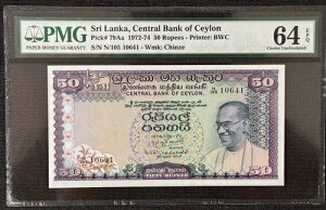 1972-74 Sri Lanka Central Bank of Ceylon 50 Rupees Pick#79Aa PMG 64商品について流通/非流通 非流通種類 紙幣発行年 1972-74年国 スリランカグレード 40認証 ...
