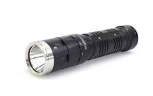 調光リングで簡単に調光が行えるハンディーモデルです。仕様ルーメン:100ルーメン、単3型電池x1本、有効照射距離:30m、防水等級:IPX8、素材:航空機用アルミニウム、付属品:Oリング・ランヤード・ボタン・クリップ。