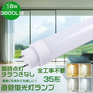 LED蛍光灯 35W形(工事不要タイプ) 消費電力 18W 全光束 3600LM 200LM/W 口金 G13(180°回転式) 入力電圧 AC85V〜265V 50/60HZ 給電方式 両側給電(片側給電の場合に、工事必要) 色温度...